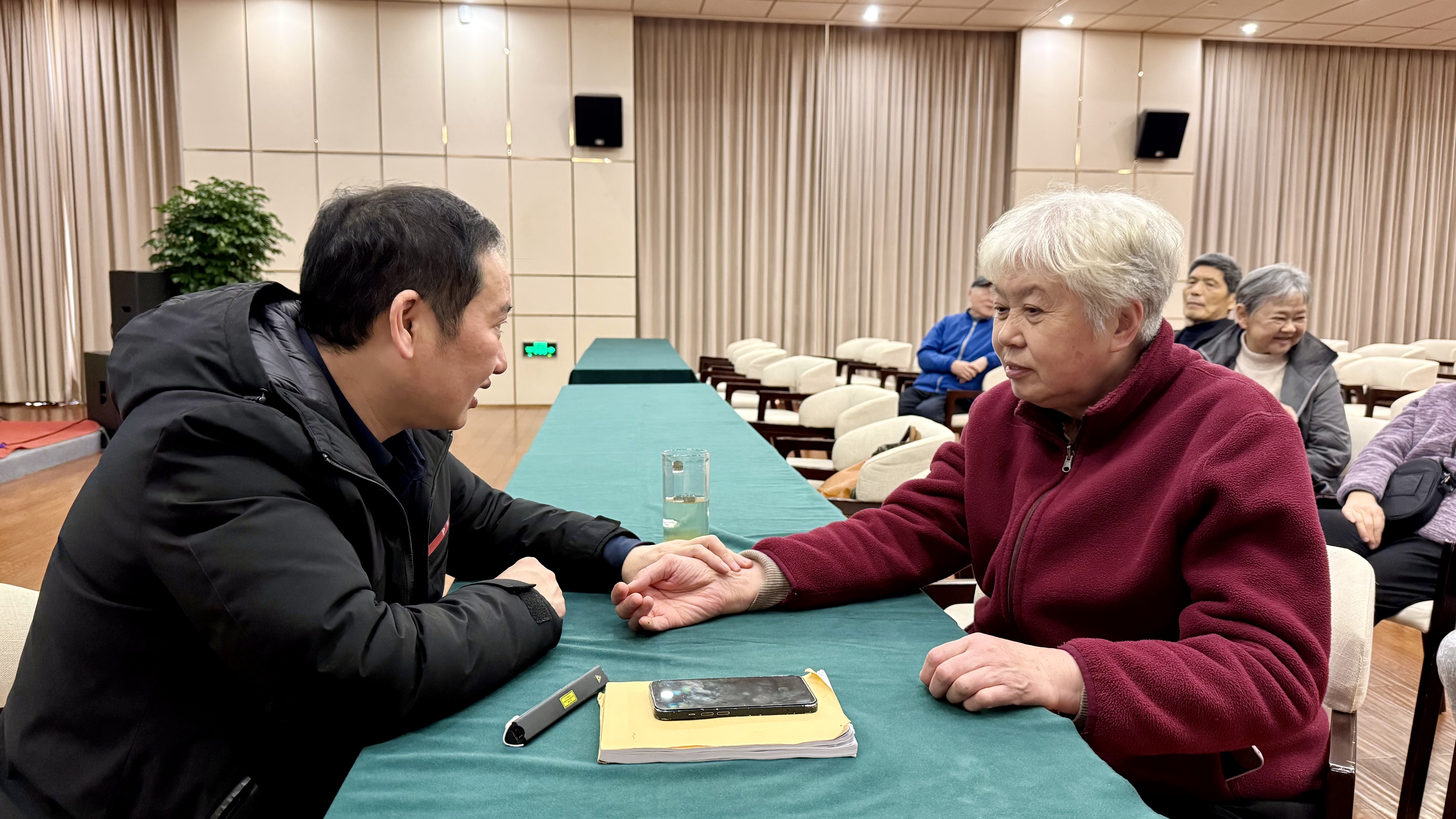 讲座结束后,徐医师为在场会员提供了一对一的号脉义诊。他通过望闻问切,细致体察每位长辈的身体状态,并结合个人体质给出专属的养生方案,从茶饮调理到穴位按摩,从作息调整到情志疏导,每一条建议都精准贴合叔叔阿姨的生活需求。