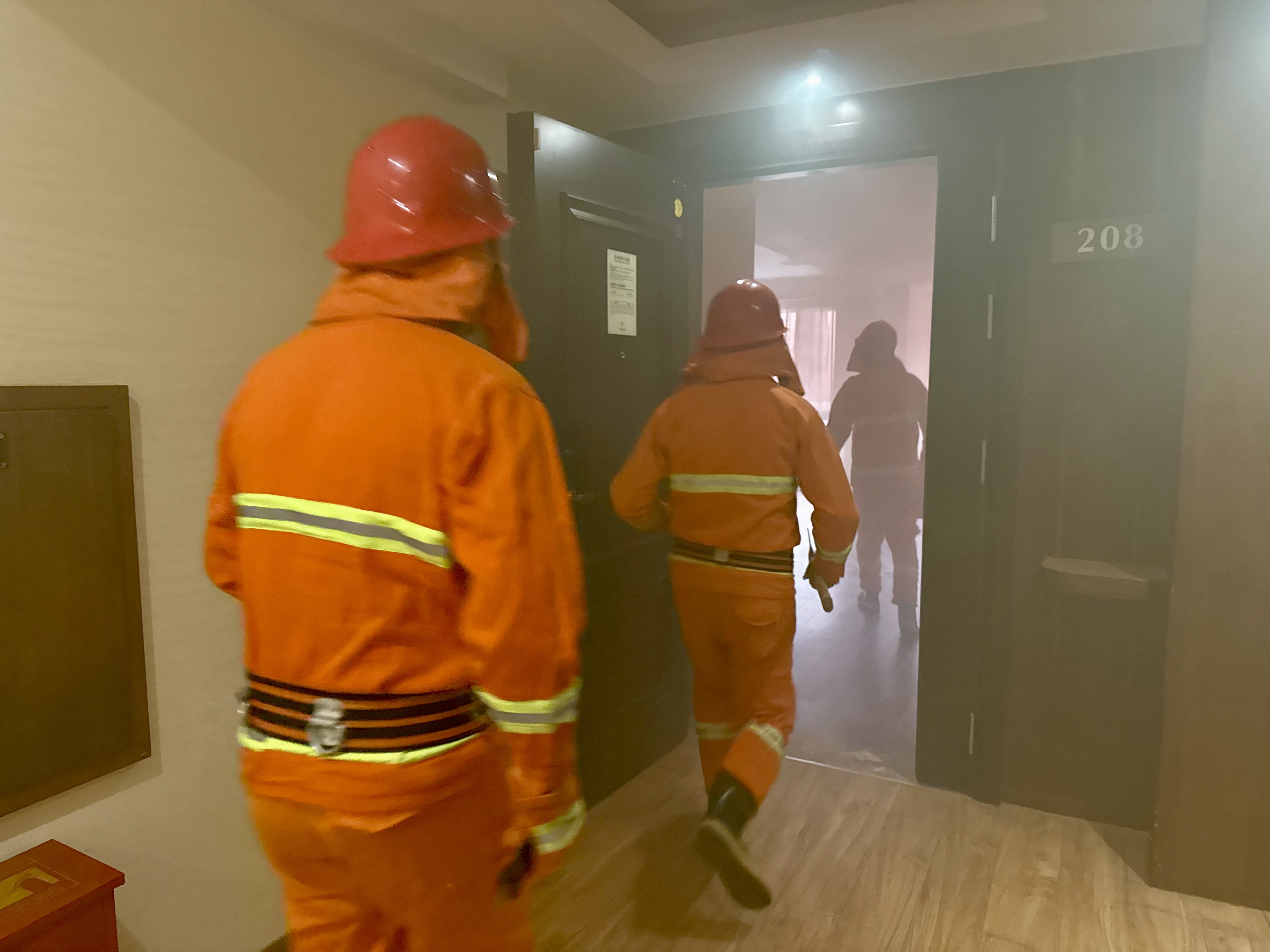 灭火行动组第一时间迅速锁定"火情"位置,穿戴好专业设备前往第一火灾现场。背着沉重的装备,在模拟火点间穿梭,额头渗出汗珠也顾不上擦拭。没有慌乱,只有经过千百次训练形成的肌肉记忆。