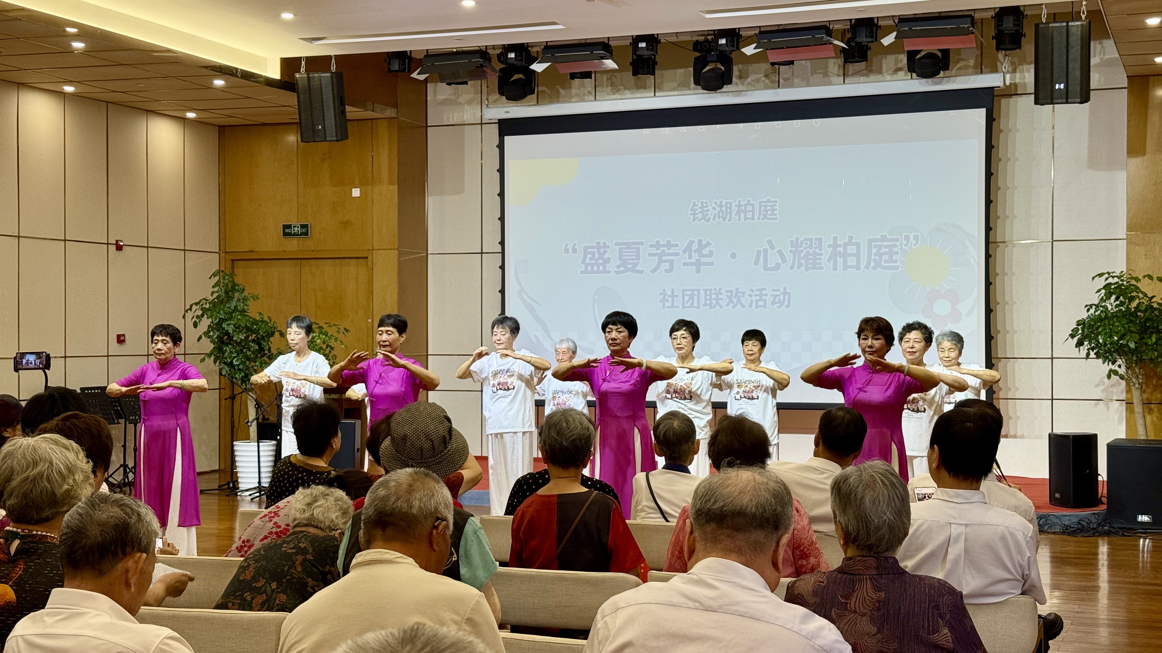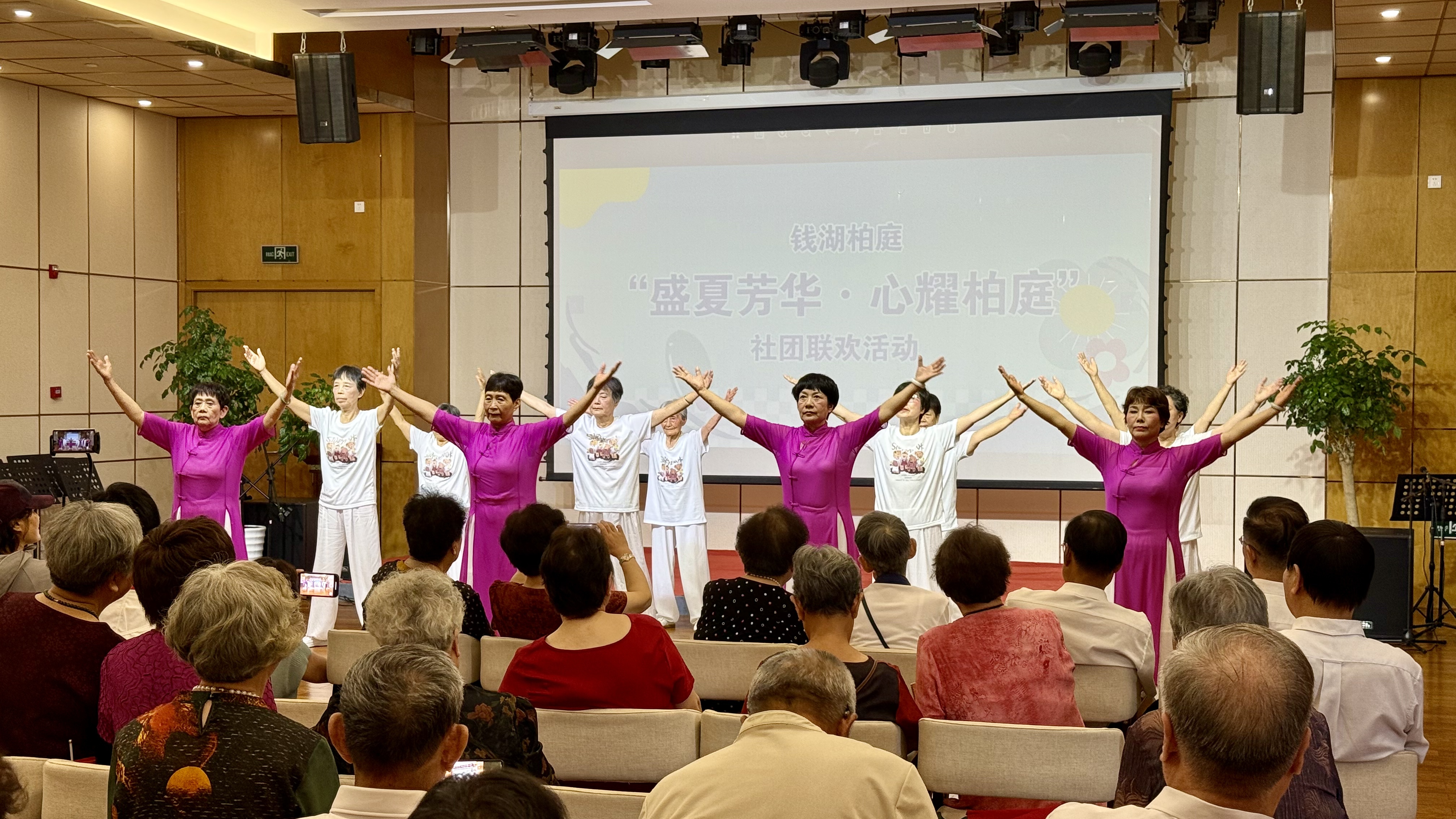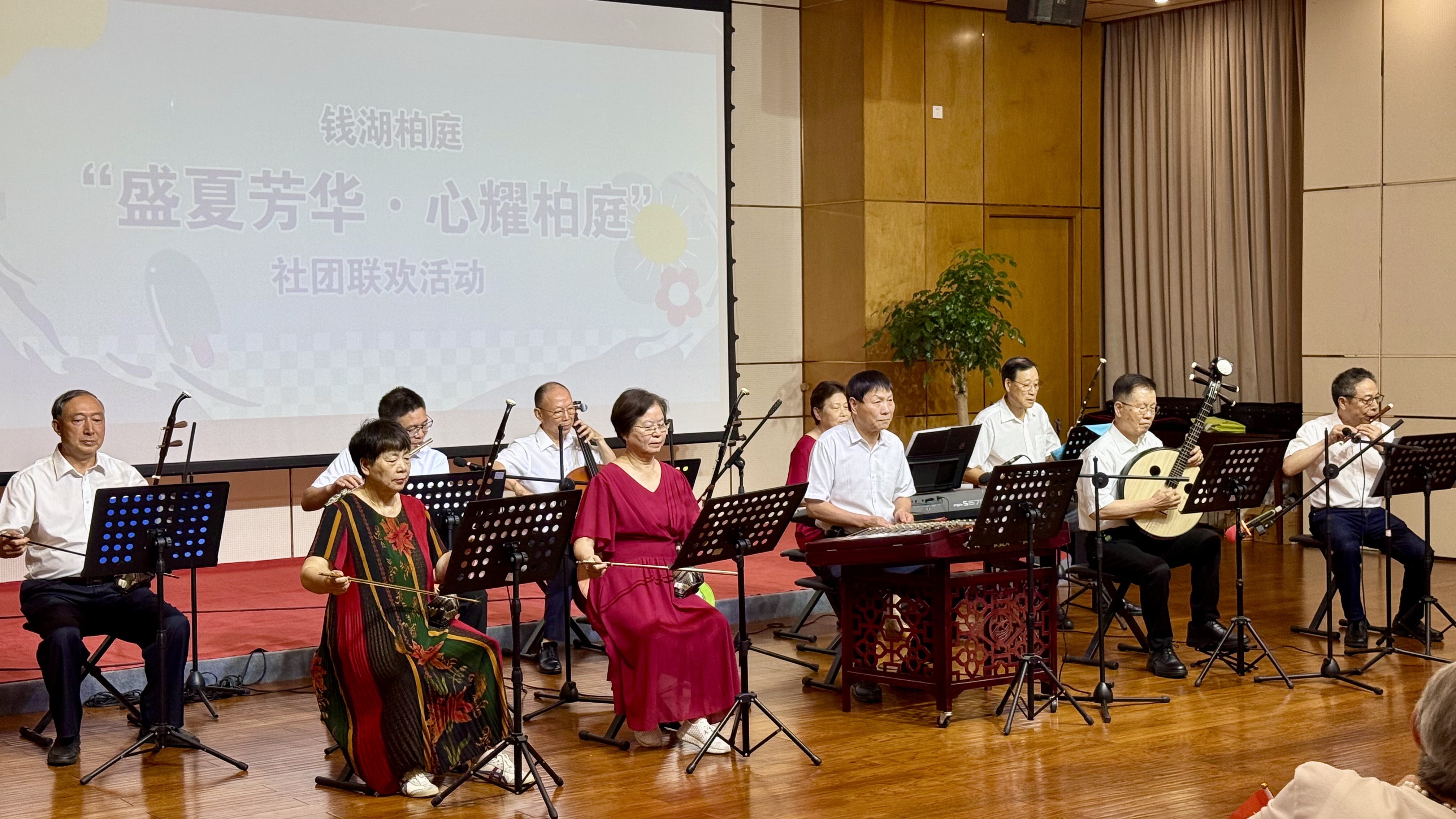 蝉鸣催浓了夏意,晚风捎来了欢歌。钱湖柏庭的二楼多功能厅里早早坐满了期待的目光------这里正上演一场属于叔叔阿姨们的"夏日社团联欢"。琴声、舞姿、歌声、笑声交织在一起,把寻常的夏日酿成了最甜的时光。