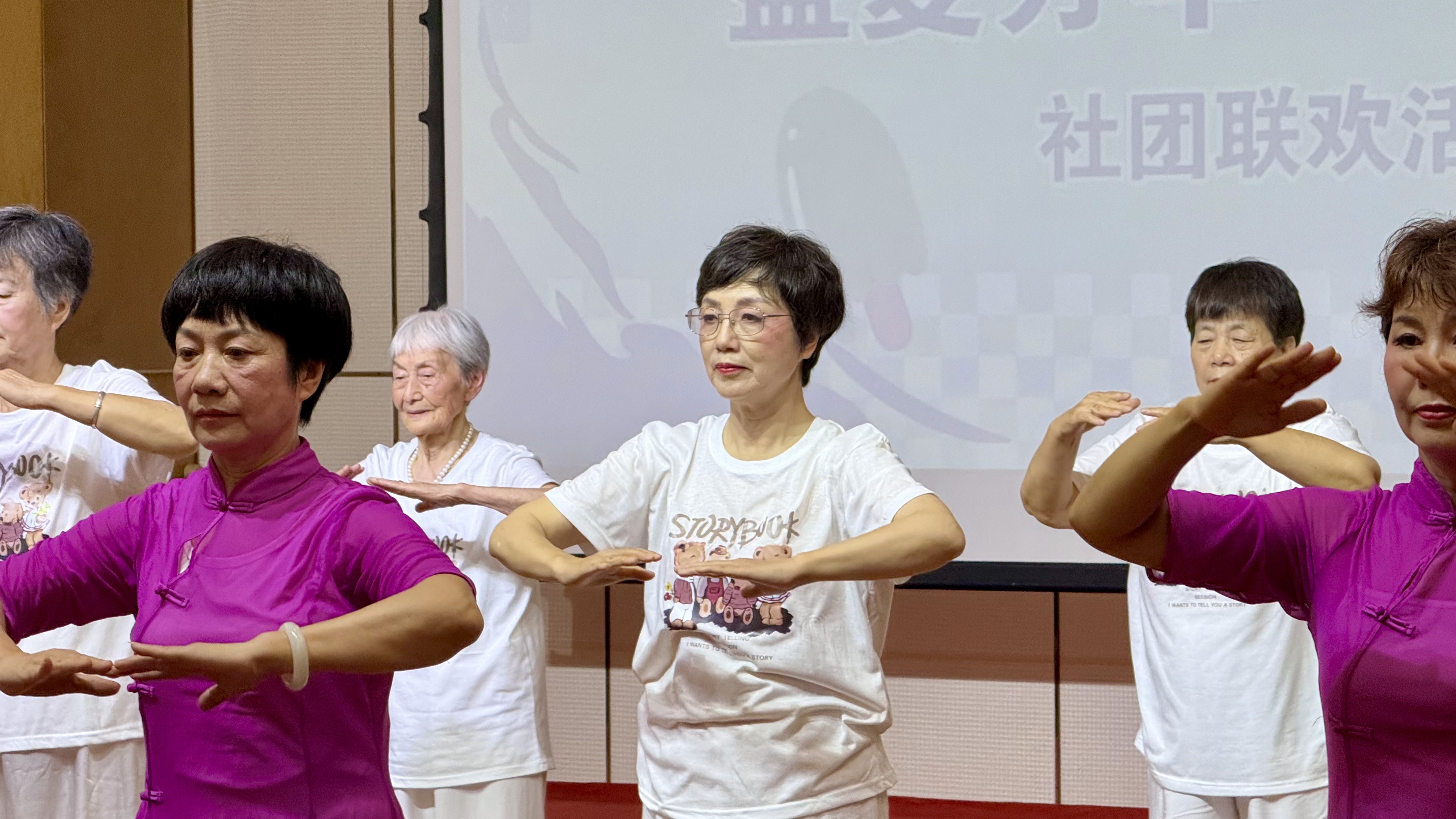 太极社团的《大舞》一开场,全场仿佛都静了下来。会员们抬手、转身、呼吸,动作缓慢却有力,每一个姿势都透着"行云流水"的韵味。这不仅是养生,更是一种生活态度,也是在快节奏的日子里,守住一份从容,是最好的修行。