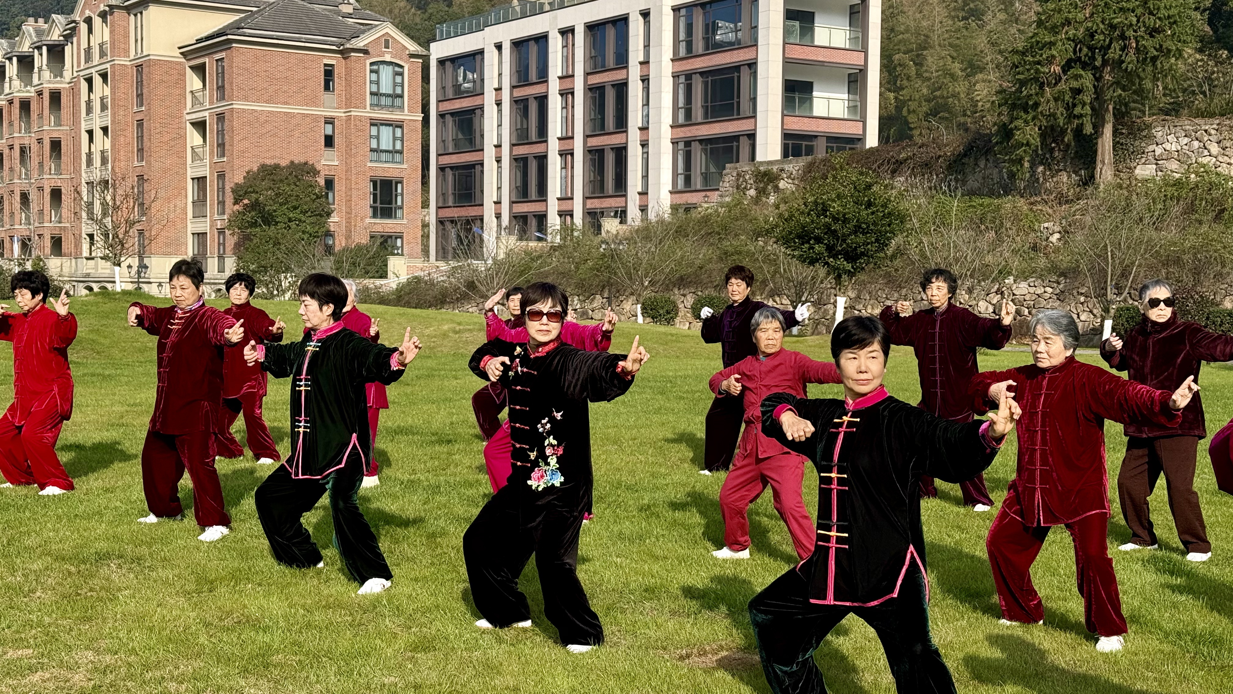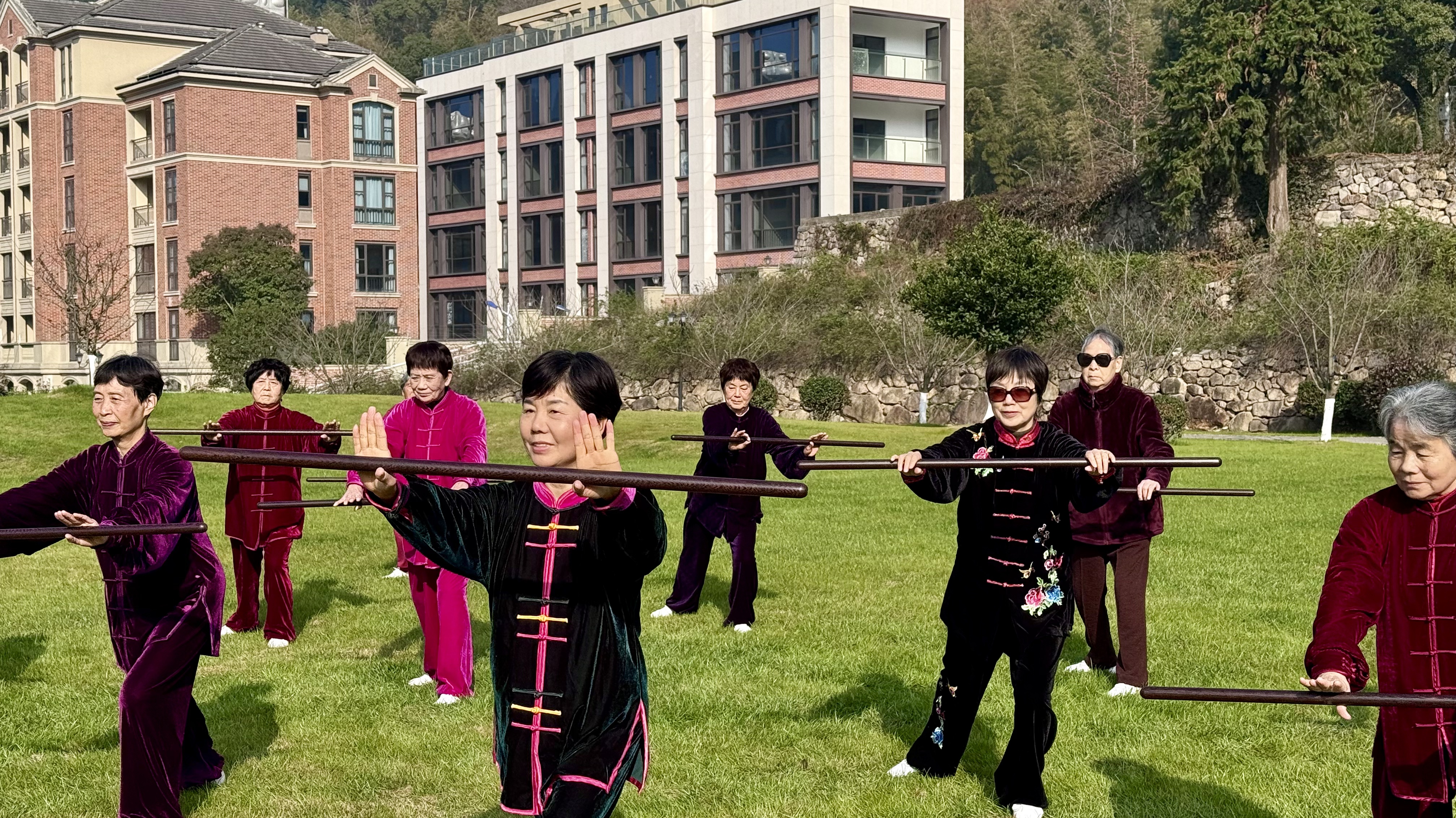 晨光下,社员们的身影舒展挺拔,一招一式皆透着太极的独特韵味。这场农庄草坪上的太极展示,不仅是传统文化的一次精彩演绎,更展现了钱湖柏庭长辈们热爱生活、活力满满的精神风貌,也让邻里间的情谊在一招一式中愈发深厚。